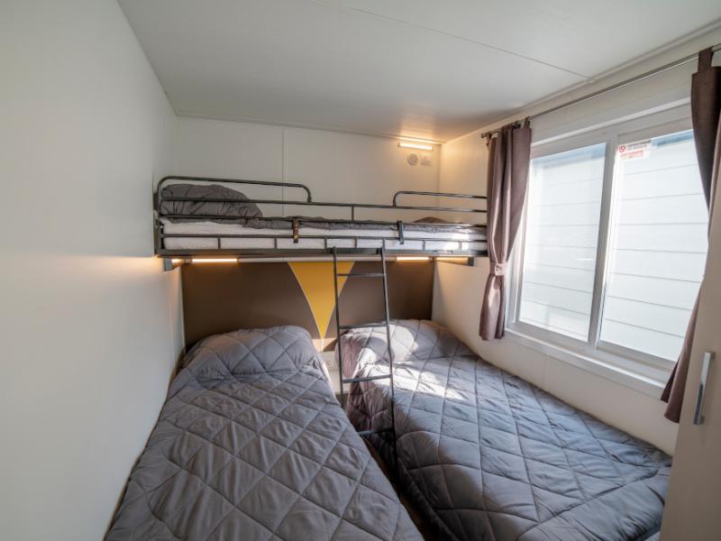 There are a double bedroom and a bedroom with two single beds and a foldaway bed; two private bathrooms complete with shower, toilet, sink, hairdryer and cabinet; living room with kitchenette located on the front to be able to enjoy in the best way the outdoor space of the veranda and sofa with elegant finishes. The structure is equipped with air conditioning on request. The private parking space completes the offer.