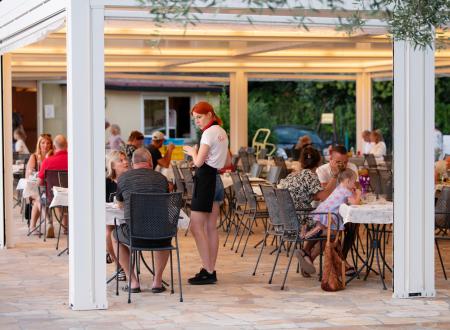 Restaurant and bar, with indoor and outdoor seats, located in the central area of the camping, adjacent to the pool complex. Take-away service available.